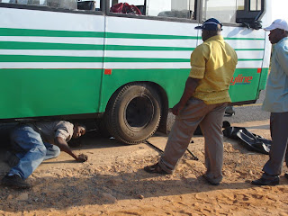 Para além do semi-eixo, o rolamento estava gripado. Levou 3 “horas de tempo” a concertar a avaria, de uma forma que qualquer mecânico ocidental consideraria impossível: à pancada, e com um martelo emprestado por um camião que parou!!!