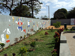 Por enquanto temos trabalhado no mural. Diga-se que está a andar de “vento em popa”! A motivação e alegria das crianças é extrema. Está toda a gente muito contente com a vida que este muro está a trazer ao Centro Dia! Ouvem-se por toda a parte murmúrios e se estivermos com atenção, há sempre um olho sorrateiro à espreita para ver o que está a nascer dali!