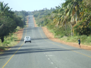 São 6h do dia 15, quarta-feira, e espero no cruzamento da Dimac pela Irmã Lídia. Ela vai buscar uma outra sua Irmã e dá-me boleia. Como ela está sempre acelerada, fui uns minutos mais cedo para ela não esperar, esquecendo-me dos cigarros. Os minutos passam… nem Lídia, nem GT`s. As bicicletas começam a multiplicar-se em direcção à cidade. Finalmente, aparece um vendedor ambulante com uma caixa enorme de produtos. Chamo-o e faço a pergunta da praxe. “ GT tá a quanto?”. O rapaz, olhando meio desconfiado para mim diz “Tá a 30”. Preço de branco, pois. 10 segundos chegam para lhe fazer perceber que não sou turista. Fico com o maço a 15 meticais. No fundo da estrada surge uma carrinha Nissan. Não é a Lídia, a dela é verde, esta é creme. Acendo o cigarro, dou duas passas, e a carrinha para à minha frente. Afinal! Lídia tem carro novo!!! Vem acompanhada de uma Irmã, antiga Provincial das irmãs Dominicanas, da Srª Morais e de mais um rapaz. E eu a pensar que íamos apenas os 2! Precisava daquele tempo para uma conversa!!! Sento-me no banco de trás… começa a viagem…
